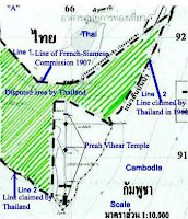 Los dirigentes thailandeses descubrieron lo que todos los políticos acaban descubriendo antes o después: que es más fácil crear un conflicto que solucionarlo. Lo que pudo haber empezado como una mezcla de orgullo patriótico y distraer la atención se ha convertido en un conflicto enconado entre los dos vecinos, que hizo que en el verano de 2008 algunos temieran que pudieran llegar a las manos. El asunto se saldó con algunos tiros y un par de muertos, que seguramente carecerían de los estudios necesarios como para apreciar que estaban muriendo por la posesión de un templo shivaista del siglo XI-XII, construido bajo los reinados de los reyes Suryavarman I y Suryavarman II, que tiene la peculiaridad de haber sido construido siguiendo un eje norte-sur. Ésta es la tristeza de morir analfabeto.